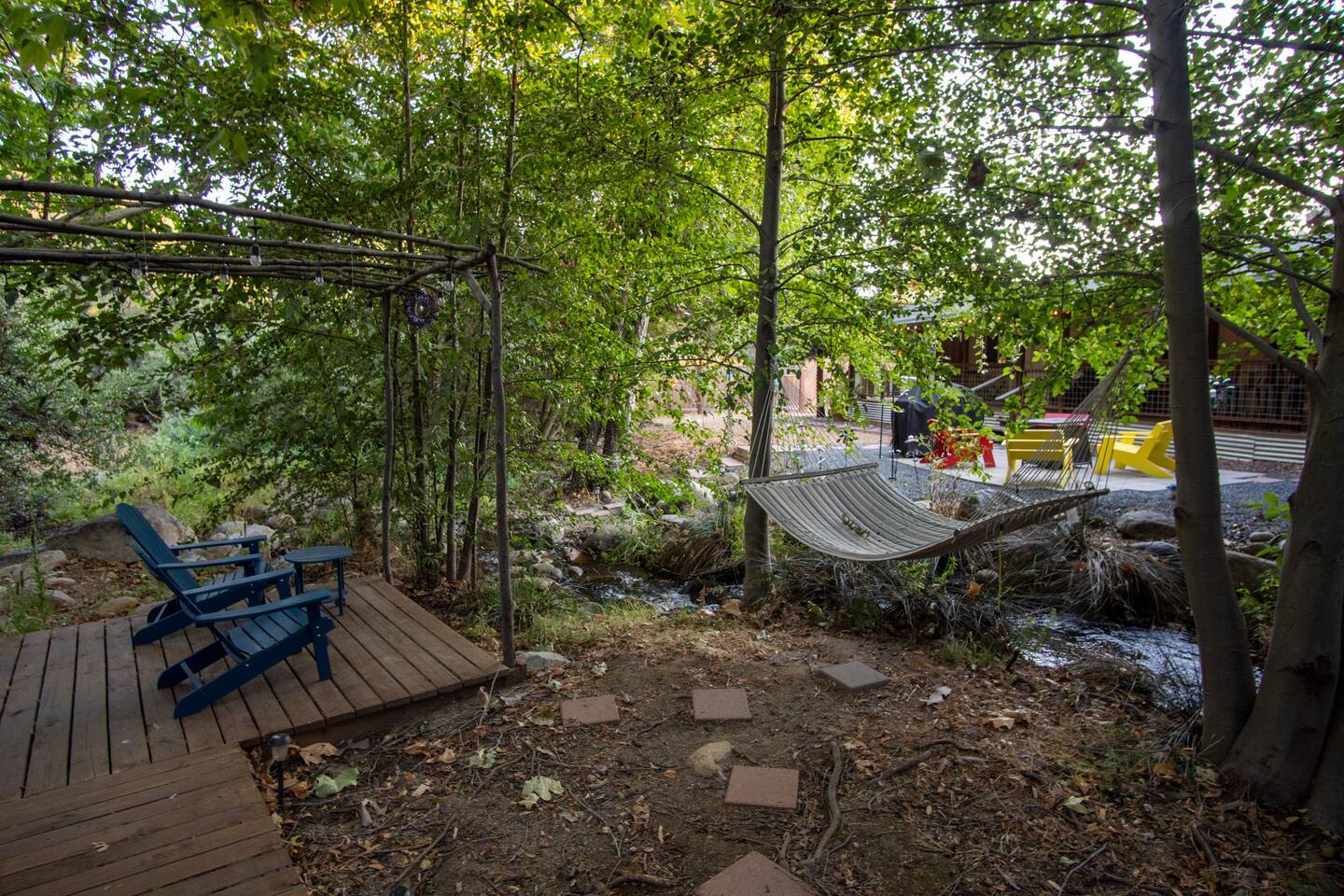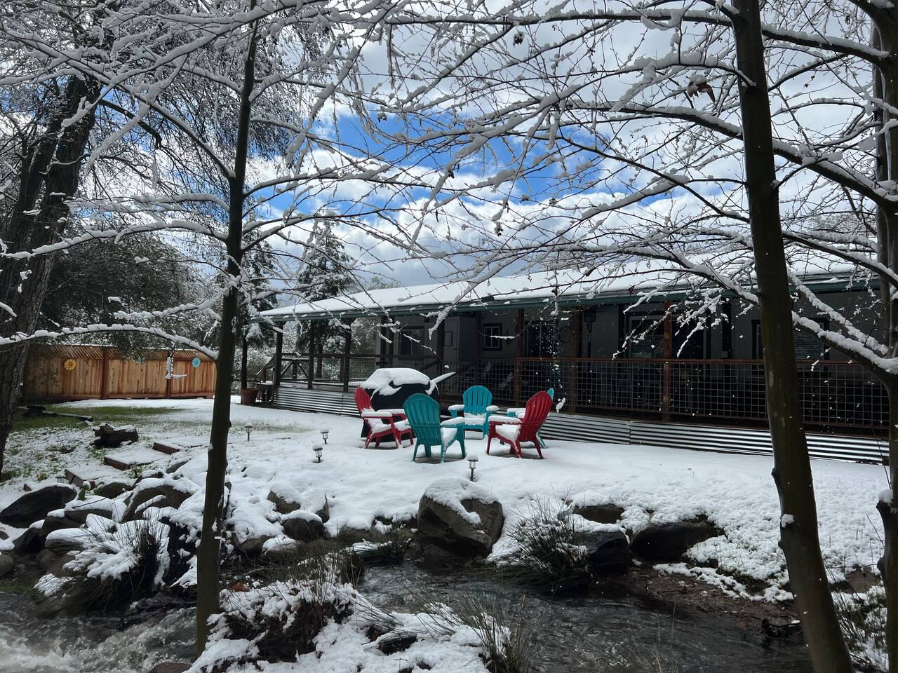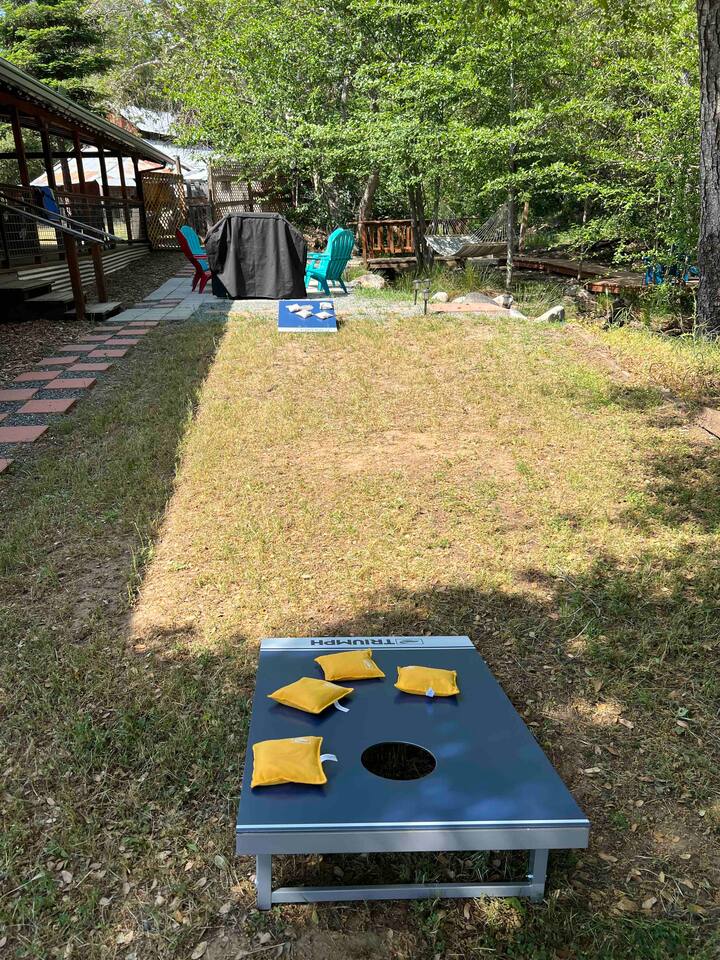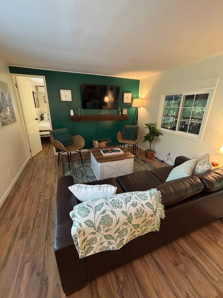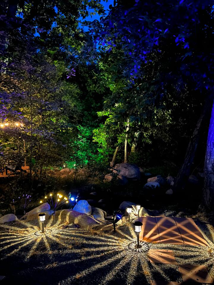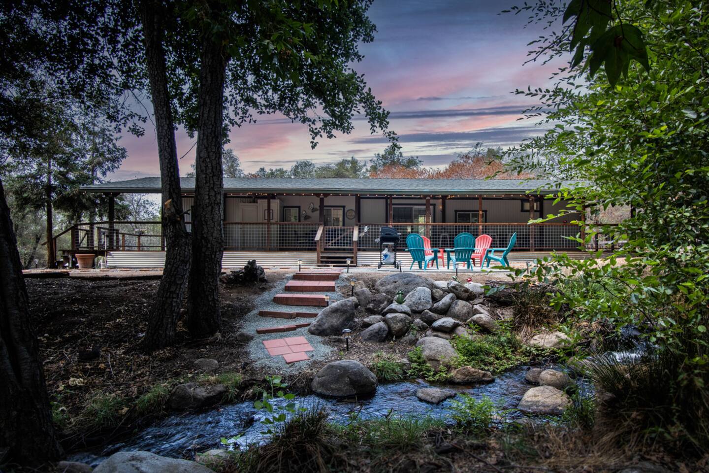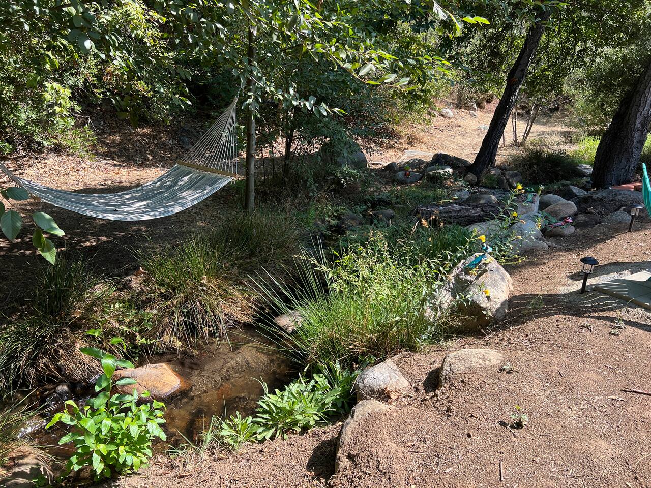 Welcome to Lone Wolf Outpost—a modern-rustic retreat set on a truly one-of-a-kind private creek. This is not shared river access or a pond nearby—this is your very own year-round, flowing creek with multiple sitting areas, a hammock over the water, cold plunge spot, and total privacy. Nothing else in this region offers what you’ll experience here. We’ve transformed a classic ranch mobile home into a charming, upgraded escape with brand new furniture, cozy beds, and stylish details—designed to help you reconnect with nature, your partner, or just yourself. 🌿 The Outdoor Experience Hammock suspended over the creek (perfect nap spot) Yoga/meditation deck with Adirondack chairs and table Outdoor living space with fire table (seasonal use), furniture, and shade Bistro table and bar stools on the deck railing Dining area under the covered patio Propane BBQ for outdoor meals Peaceful sounds of flowing water and wildlife all around 🛏 The Cabin Interior 2 Bedrooms | 1 Full Bath + 1 Half Bath Memory foam mattresses for cloud-like sleep Fully stocked kitchen with all essentials + brand-new appliances Dining area indoors + creekside dining outdoors Living room with smart TV (Roku guest mode), board games, and two wicker chairs Two workspaces: one in the living room, one in the second bedroom Sleeping Arrangements: Bedroom 1: Queen bed + private half bath Bedroom 2: Two single beds + private desk workspace 📶 Comfort, Tech & Connectivity Free high-speed Wi-Fi 43" TV with Roku Guest Mode (bring your login info) Washer/dryer in outdoor cabinet Hair dryer, ironing board, clothes steamer Plush towels + luxury toiletries Mini split A/C & heating in each bedroom + living area Extra floor fans (summer) and cozy blankets (winter) We recommend bringing warm clothes in winter if you're not used to mountain air, though the mini splits keep the home perfectly comfortable year-round. 📍 Location Perks Attending a wedding at Springville Ranch? We’re just 10 minutes away. Prepare in comfort, skip the long drive, and enjoy nature after the celebration. Looking to explore? Coffee Camp Campground – 20 min Balch Park – 30 min River Island Golf Course – 20 min Lake Success – 25 min Porterville – 35 min Local eats: Cowpuncher’s Café, Java Express, Poor Richard’s Pizza 🚫 Important to Note: No filming, photography, or commercial production permitted via Airbnb. For those inquiries, please reach out directly through our website. 🧘♀️ You’ll Love This Place If You’re Into: #magical #mountainretreat #privatecreek #hammockvibes #naturetherapy #freshair #stars #birdwatching #digitaldetox #romanticgetaway #healingescape #secludedstay #forestbathing #petswelcome #reconnect #bestnightever