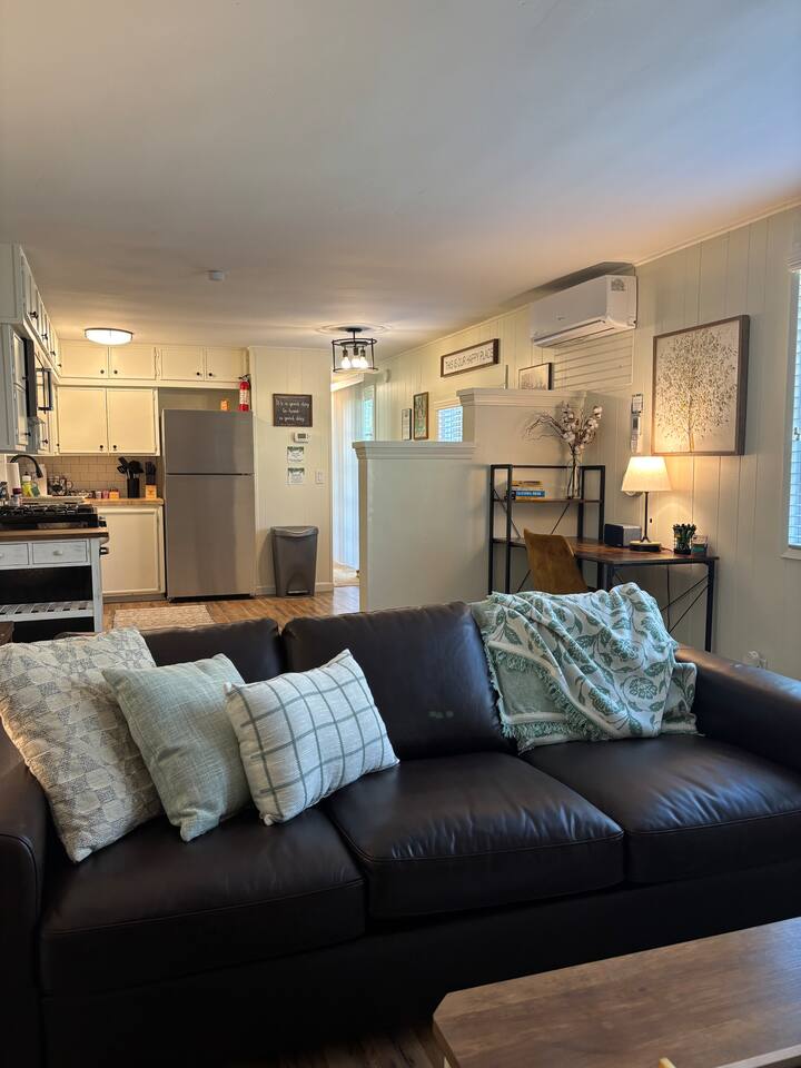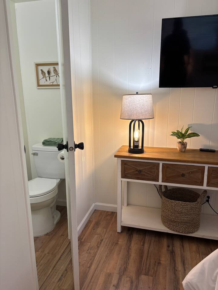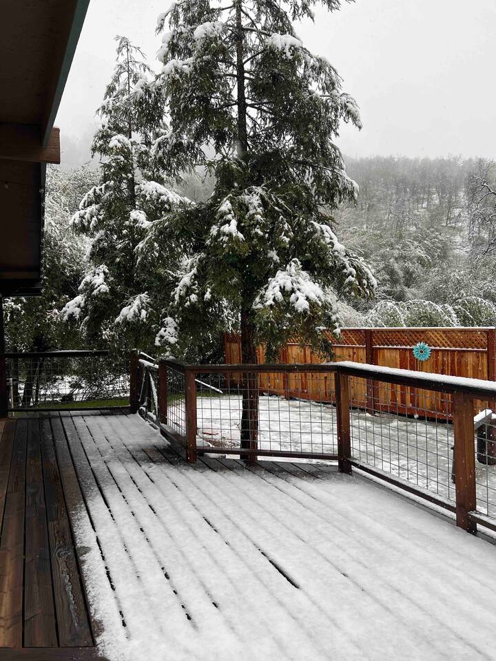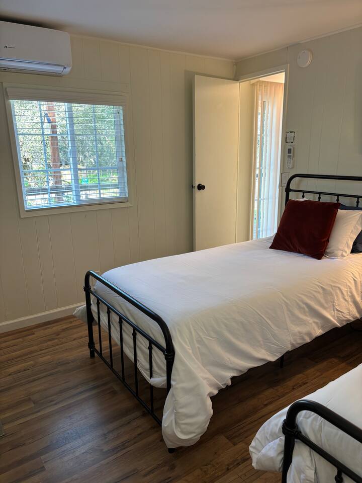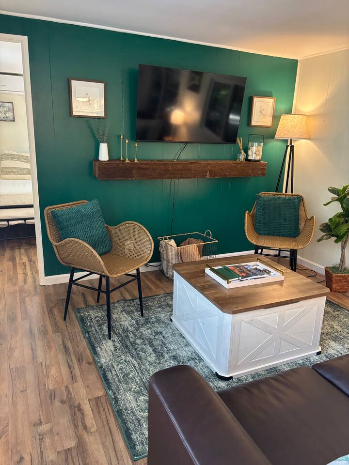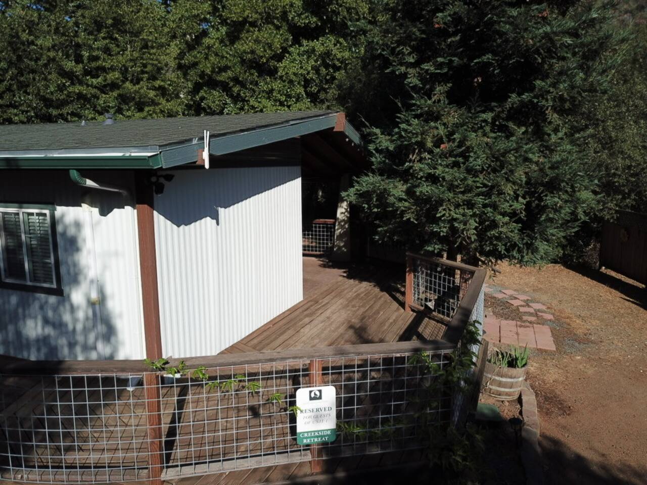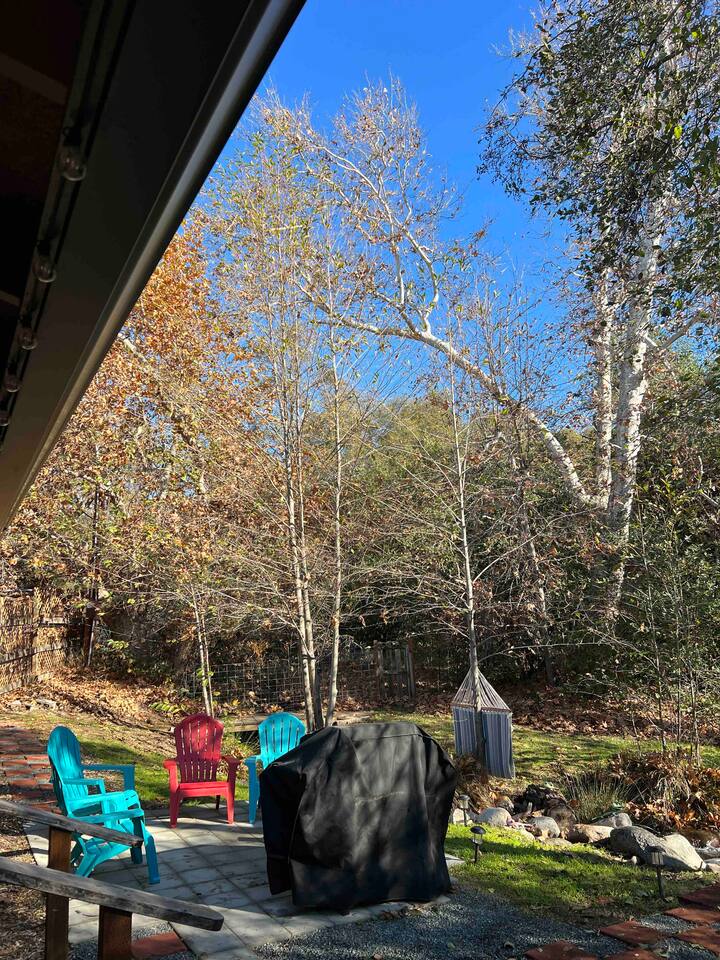Welcome to Lone Wolf Outpost—a modern-rustic retreat set on a truly one-of-a-kind private creek. This is not shared river access or a pond nearby—this is your very own year-round, flowing creek with multiple sitting areas, a hammock over the water, cold plunge spot, and total privacy. Nothing else in this region offers what you’ll experience here. We’ve transformed a classic ranch mobile home into a charming, upgraded escape with brand new furniture, cozy beds, and stylish details—designed to help you reconnect with nature, your partner, or just yourself. 🌿 The Outdoor Experience Hammock suspended over the creek (perfect nap spot) Yoga/meditation deck with Adirondack chairs and table Outdoor living space with fire table (seasonal use), furniture, and shade Bistro table and bar stools on the deck railing Dining area under the covered patio Propane BBQ for outdoor meals Peaceful sounds of flowing water and wildlife all around 🛏 The Cabin Interior 2 Bedrooms | 1 Full Bath + 1 Half Bath Memory foam mattresses for cloud-like sleep Fully stocked kitchen with all essentials + brand-new appliances Dining area indoors + creekside dining outdoors Living room with smart TV (Roku guest mode), board games, and two wicker chairs Two workspaces: one in the living room, one in the second bedroom Sleeping Arrangements: Bedroom 1: Queen bed + private half bath Bedroom 2: Two single beds + private desk workspace 📶 Comfort, Tech & Connectivity Free high-speed Wi-Fi 43" TV with Roku Guest Mode (bring your login info) Washer/dryer in outdoor cabinet Hair dryer, ironing board, clothes steamer Plush towels + luxury toiletries Mini split A/C & heating in each bedroom + living area Extra floor fans (summer) and cozy blankets (winter) We recommend bringing warm clothes in winter if you're not used to mountain air, though the mini splits keep the home perfectly comfortable year-round. 📍 Location Perks Attending a wedding at Springville Ranch? We’re just 10 minutes away. Prepare in comfort, skip the long drive, and enjoy nature after the celebration. Looking to explore? Coffee Camp Campground – 20 min Balch Park – 30 min River Island Golf Course – 20 min Lake Success – 25 min Porterville – 35 min Local eats: Cowpuncher’s Café, Java Express, Poor Richard’s Pizza 🚫 Important to Note: No filming, photography, or commercial production permitted via Airbnb. For those inquiries, please reach out directly through our website. 🧘♀️ You’ll Love This Place If You’re Into: #magical #mountainretreat #privatecreek #hammockvibes #naturetherapy #freshair #stars #birdwatching #digitaldetox #romanticgetaway #healingescape #secludedstay #forestbathing #petswelcome #reconnect #bestnightever