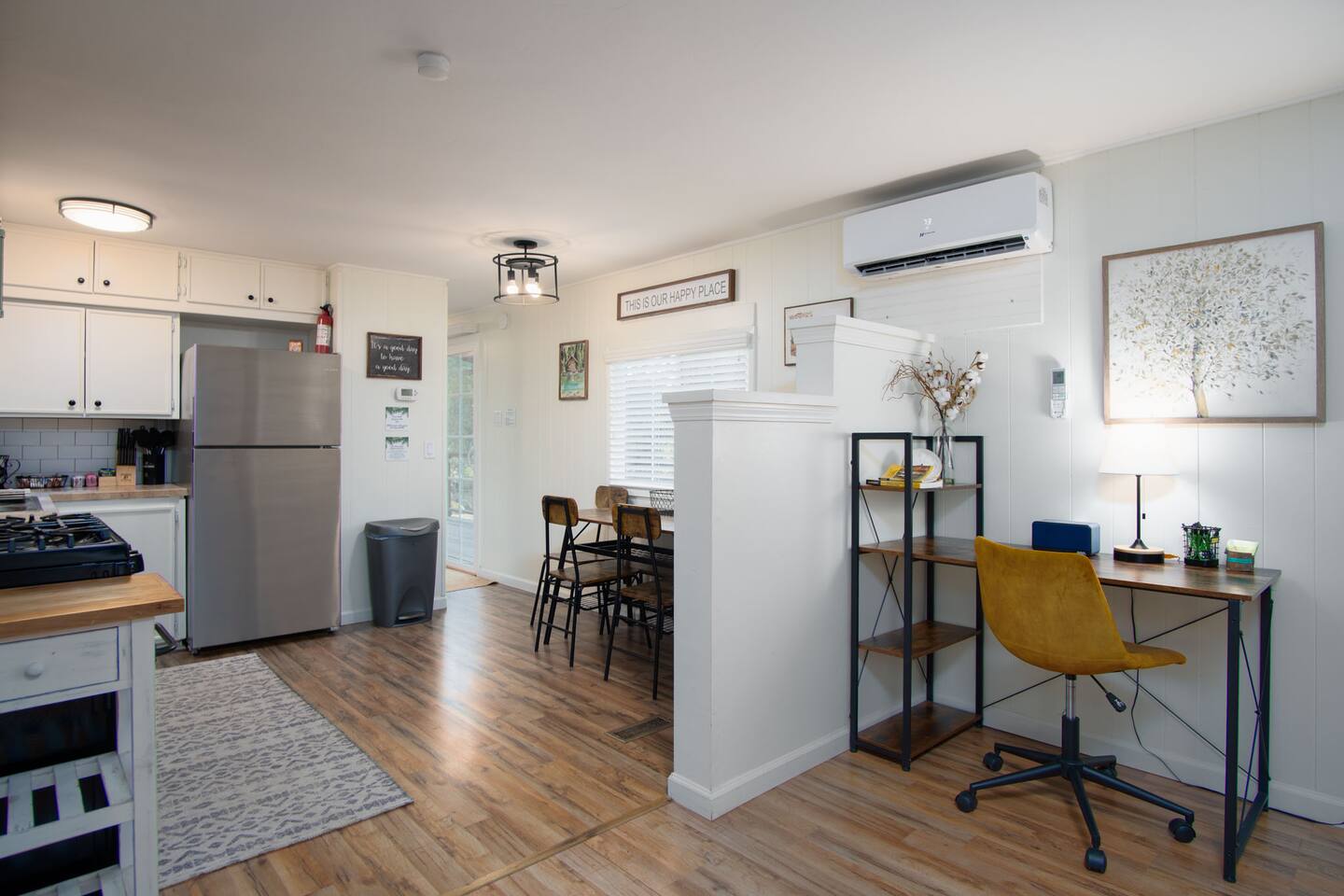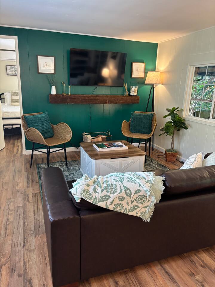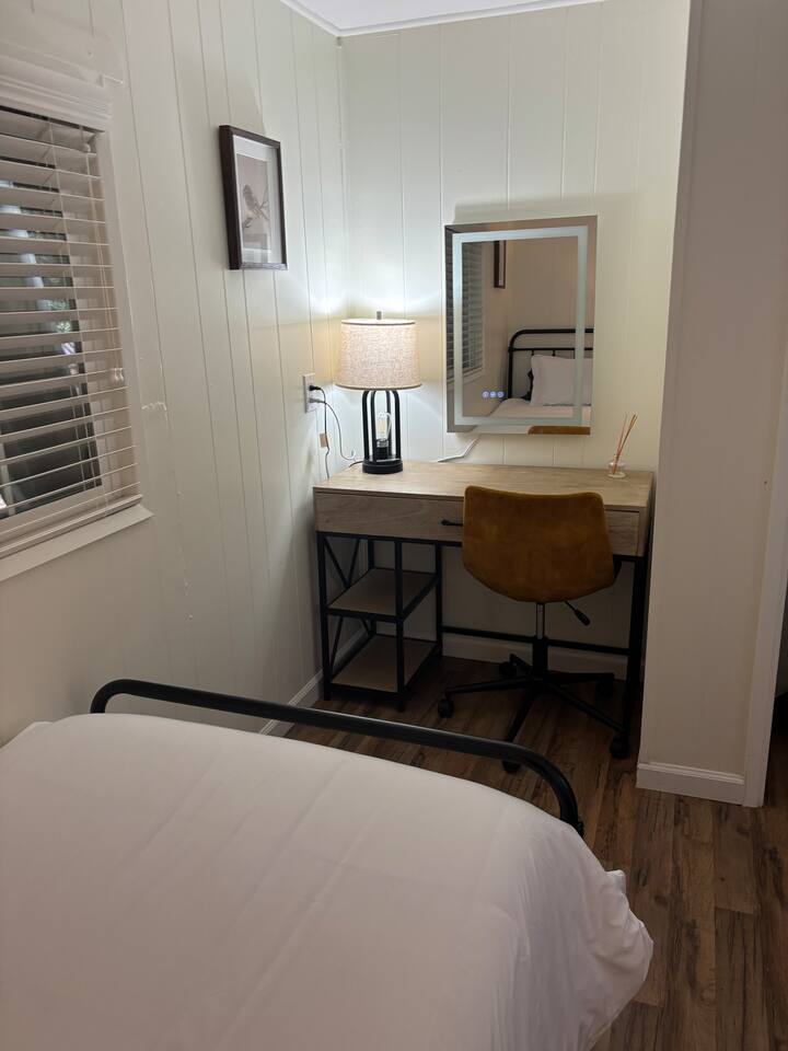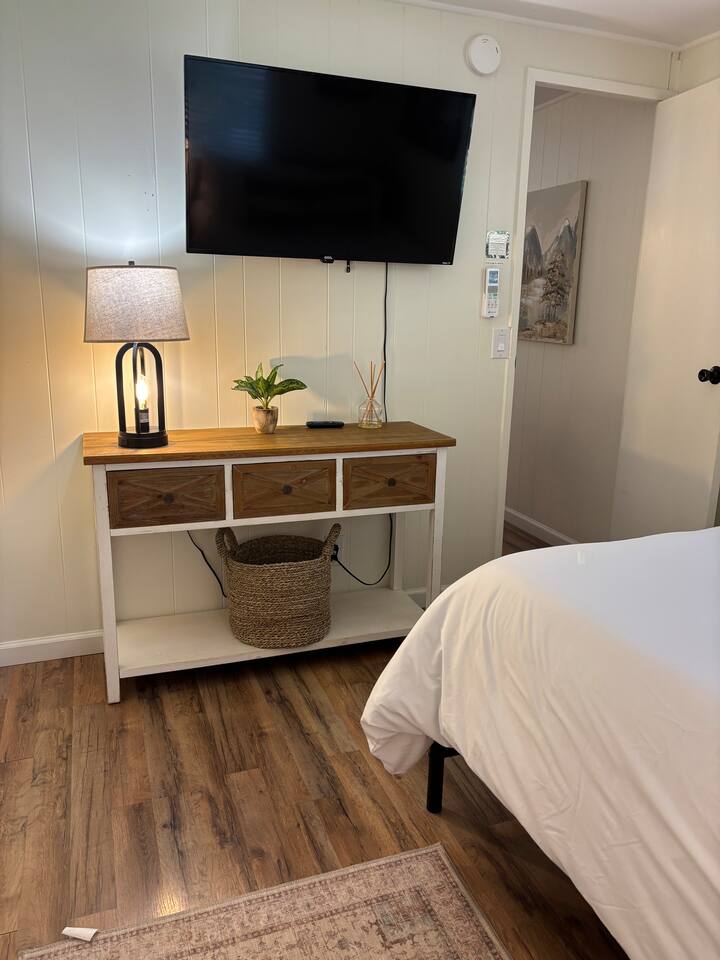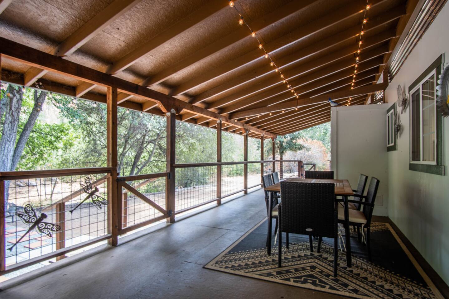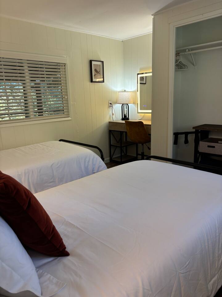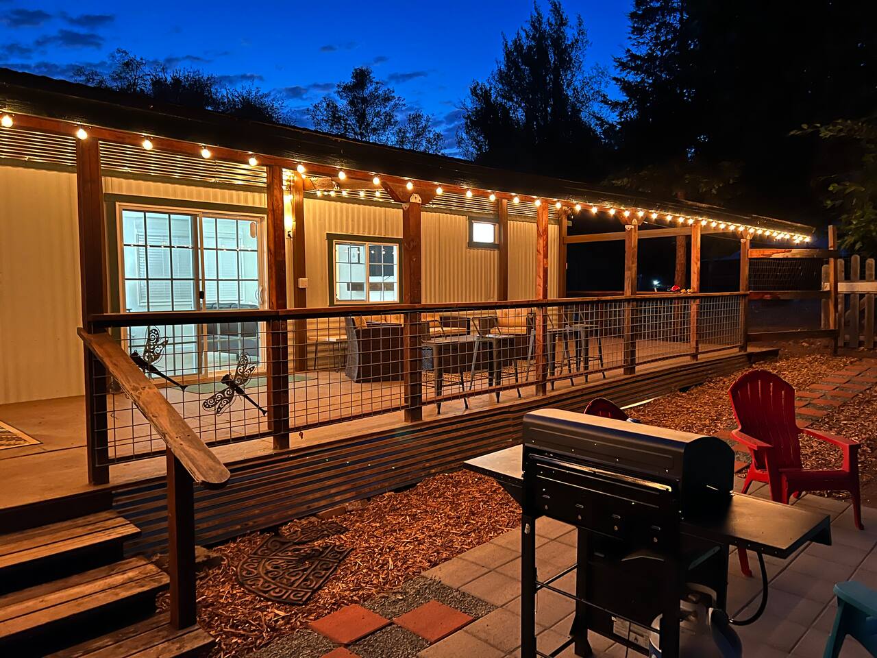 Welcome to Lone Wolf Outpost—a modern-rustic retreat set on a truly one-of-a-kind private creek. This is not shared river access or a pond nearby—this is your very own year-round, flowing creek with multiple sitting areas, a hammock over the water, cold plunge spot, and total privacy. Nothing else in this region offers what you’ll experience here. We’ve transformed a classic ranch mobile home into a charming, upgraded escape with brand new furniture, cozy beds, and stylish details—designed to help you reconnect with nature, your partner, or just yourself. 🌿 The Outdoor Experience Hammock suspended over the creek (perfect nap spot) Yoga/meditation deck with Adirondack chairs and table Outdoor living space with fire table (seasonal use), furniture, and shade Bistro table and bar stools on the deck railing Dining area under the covered patio Propane BBQ for outdoor meals Peaceful sounds of flowing water and wildlife all around 🛏 The Cabin Interior 2 Bedrooms | 1 Full Bath + 1 Half Bath Memory foam mattresses for cloud-like sleep Fully stocked kitchen with all essentials + brand-new appliances Dining area indoors + creekside dining outdoors Living room with smart TV (Roku guest mode), board games, and two wicker chairs Two workspaces: one in the living room, one in the second bedroom Sleeping Arrangements: Bedroom 1: Queen bed + private half bath Bedroom 2: Two single beds + private desk workspace 📶 Comfort, Tech & Connectivity Free high-speed Wi-Fi 43" TV with Roku Guest Mode (bring your login info) Washer/dryer in outdoor cabinet Hair dryer, ironing board, clothes steamer Plush towels + luxury toiletries Mini split A/C & heating in each bedroom + living area Extra floor fans (summer) and cozy blankets (winter) We recommend bringing warm clothes in winter if you're not used to mountain air, though the mini splits keep the home perfectly comfortable year-round. 📍 Location Perks Attending a wedding at Springville Ranch? We’re just 10 minutes away. Prepare in comfort, skip the long drive, and enjoy nature after the celebration. Looking to explore? Coffee Camp Campground – 20 min Balch Park – 30 min River Island Golf Course – 20 min Lake Success – 25 min Porterville – 35 min Local eats: Cowpuncher’s Café, Java Express, Poor Richard’s Pizza 🚫 Important to Note: No filming, photography, or commercial production permitted via Airbnb. For those inquiries, please reach out directly through our website. 🧘♀️ You’ll Love This Place If You’re Into: #magical #mountainretreat #privatecreek #hammockvibes #naturetherapy #freshair #stars #birdwatching #digitaldetox #romanticgetaway #healingescape #secludedstay #forestbathing #petswelcome #reconnect #bestnightever